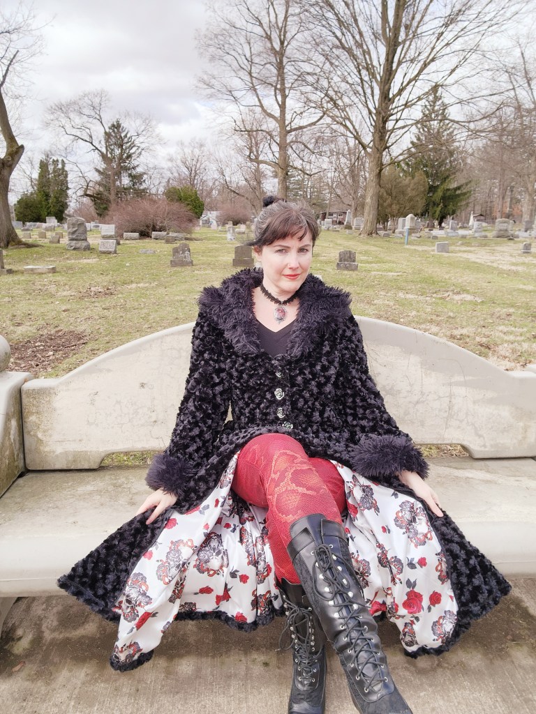 “I have the most wonderful and unique creation by Michelle at Arcane Expressions. For winter, she created a stunning red faux fur headdress covered with adornments and lined with a warm, cosy fabric so I could wear it in winter and could wear it and stand out as my brand as an artist. The quality is amazing, and I feel her passion and care in the piece, which as, with all her work, is a work of art.